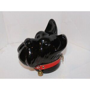 Vintage Black Porcelain Scottie Dog w/Collar Cookie Jar