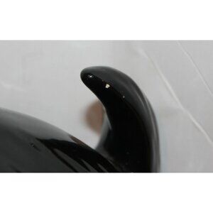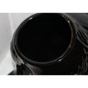 This vintage black porcelain Scottie dog cookie jar with collar is a charming addition to any kitchen. Sporting a classic design, it's a perfect blend of function and style.