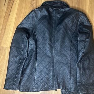 Elevate your wardrobe with this elegant black leather jacket featuring a stylish quilted design. Perfect for any occasion.