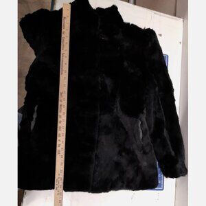 Vintage Black Rabbit Fur Coat Woman's Size M France Origin Natural Korea