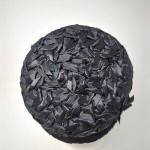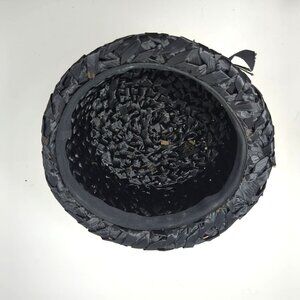 Vintage 1960s unbranded black rattan straw cloche hat with ribbon detail