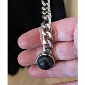 Vintage Black & Red Cabochon Silver Tone Chain Link Belt 41". One red cabochon and the rest are black. Curb link chain. Pre-owned, this belt is in great condition.