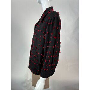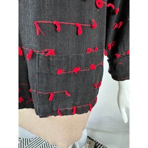 Vintage Black & Red Cactus Flower Jacket With Textured Knot Detailing & Brass Bu