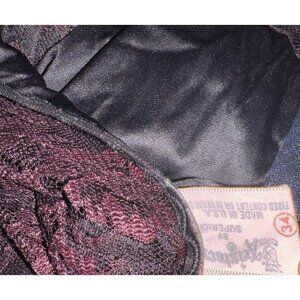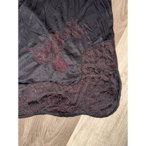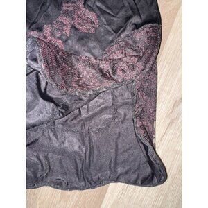 This vintage slip dress from Vanity Fair is crafted with elegant lace detailing in hues of black and red. It offers a timeless aesthetic that suits various occasions. Made in the USA, this piece embodies a classic charm with its intricate lace patterns and delicate shoulder straps.