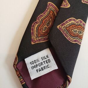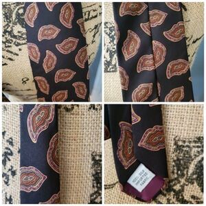 Vintage Black Red Paisley Pattern Silk Neck Tie
