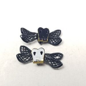 Vintage Black Rhinestone Bow Wing Shape Shoes Dress Clips, Retro 60s 70s style