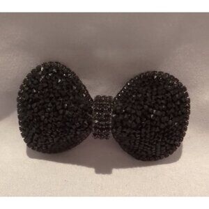 Vintage Black Rhinestone Crystal Bow Hair Clip Barrette