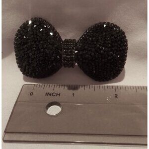 Elegant black crystal bow hair clip, measuring 2.5 inches, adds a touch of sophistication to any hairstyle. Durable and stylish accessory for various occasions.