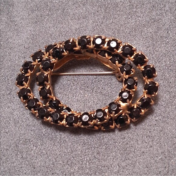 Vintage Black Rhinestone Interlocked Ovals Brooch Pin