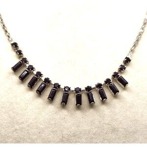 Elegant vintage black rhinestone necklace with a distinctive rectangle shape, perfect for adding a touch of classic glamour to any outfit. Ideal for special occasions or as a unique statement piece.