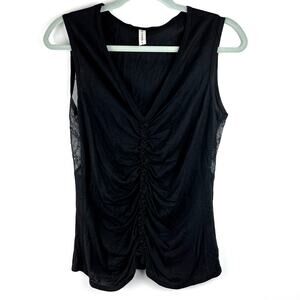 Vintage Black Ruched Sleeveless Top Medium Lace 90s Made in USA