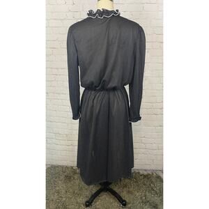 Vintage Black Ruffled Polkadot Long Sleeve Polyester Dress Medium Large
