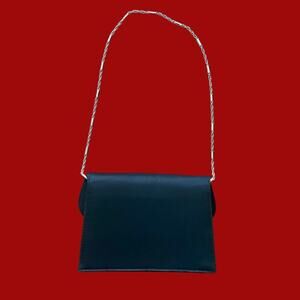 - Silver chain shoulder strap is attached, but can be tucked in to wear as a clutch