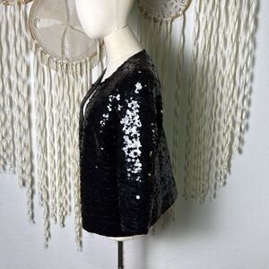 Vintage Black Sequin Quarter Sleeve Knit Jacket by Jo-Ro Imports Maimi Small