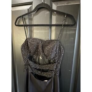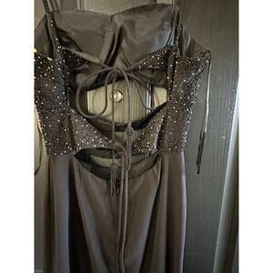 Vintage Black Sequin Spaghetti Strap Evening Prom Midi Dress Size 8