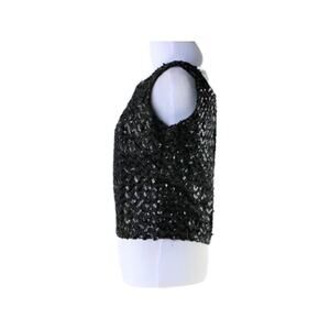 Vintage Black Sequin Top (Shell) with Back Metal Zipper Medium