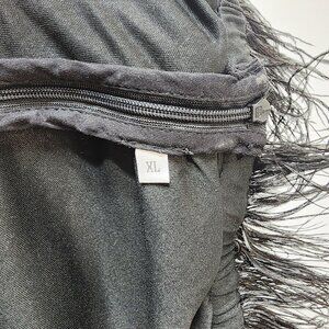 Vintage Black Sequined Dress With Puff Sleeves & Feather Trim Size XL