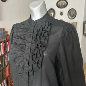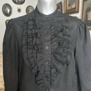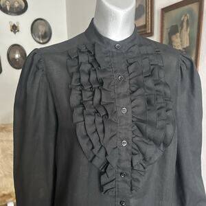 Vintage Black Sheer Ruffle Blouse Women’s 8 Whimsigoth Victorian Gothic Academia