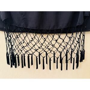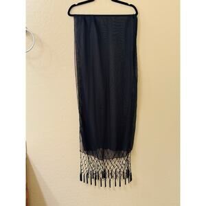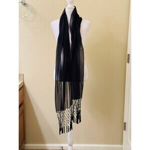 Vintage Black Sheer Scarf Shawl with Beaded Fringe Edges