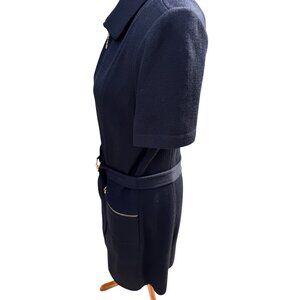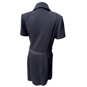 Vintage Black Short Sleeve Belted Knit Dress With Gold Zipper & Pockets