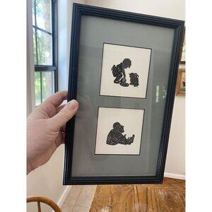 Vintage Black Silhouette Art Prints Of Children Playing In Black Frame