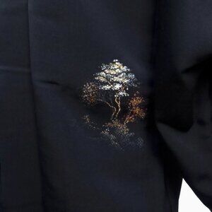 Vintage Black Silk Haori Kimono Jacket Cozy Houses & Trees Metallic Landscape