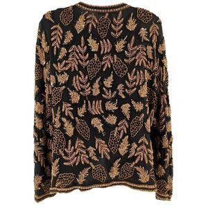 Vintage Black Silk Jacket with Tan, Gold, and Black Beads & Sequins | Candlelight by JAINSONS International | Made in India