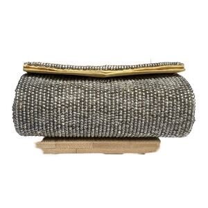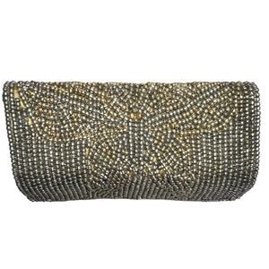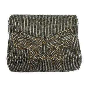 Vintage Black Silver Beaded Lipstick Case Butterfly Pattern Orange Satin Lined