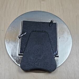 Vintage Black Silver Rhinestone trimmed round picture frame 5.25inches diameter