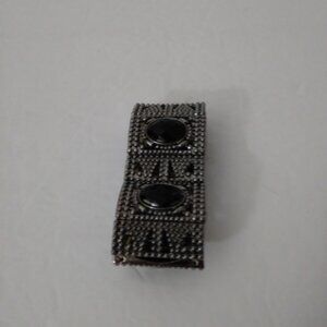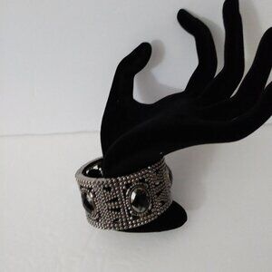 Vintage Black Silver Tone Bracelet Elastic 1 ½” Wide