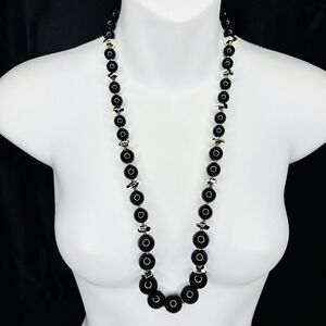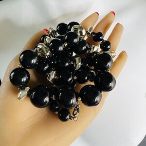Vintage Black Silver Tone Lucite Statement Beaded Graduated Beads Necklace