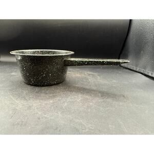Charming vintage enamel pot in black speckled design, perfect for rustic or farmhouse-style kitchens. Versatile for cooking, serving, or display, this retro 6.5” pan adds a nostalgic touch to any kitchen collection. Durable enamelware that combines functionality with classic style. No major chips or cracks. Great value!!