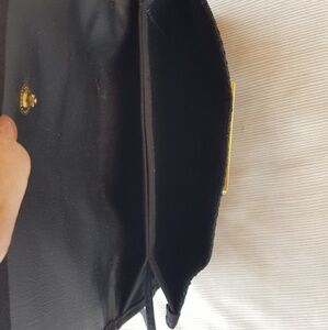 Excellent pre owned condition. Vintage Black Straw Clutch and Shoulder Bag. Snap closure. Two interior compartments. Interior mirror. Straw with cotton trim.