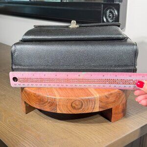 🖤✨👜 Step back in time with this classic vintage black handbag, featuring a structured, boxy silhouette reminiscent of mid-20th century “doctor’s bags” or satchels. Perfect for collectors or anyone who loves retro elegance! ✨