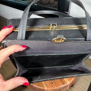 Vintage, Black Handbag, 1950s, 1960s, Doctor’s Bag, Satchel, Structured Bag, Retro, Classic, Gold Hardware, Top Handle, Twilly, Collectible, Pre-Loved, Mid-Century, Elegant