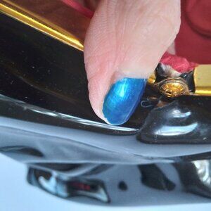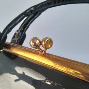 * Thick, shiny patent . Rich gold frame with a kiss clasp shaped like 2 Acorn husks. 2 Patent handle