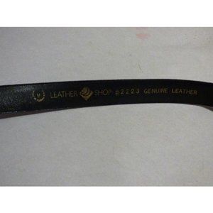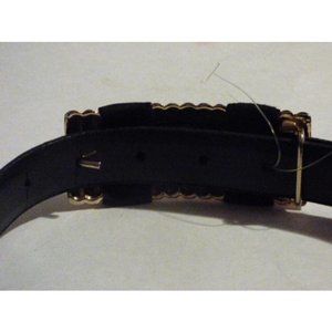 Vintage, 'Leather Shop', black suede and leather, large, textured and polished gold tone, rectangular buckle with suede accents in the buckle! The belt is classic yet very eye-catching! The belt is 1" wide in black suede on one side and leather on the other side with a bold gold, textured, rectangular buckle design! It has holes that snap to measures 27"- 31" in 1" increments. It has a look that can be dressy or casual. 35" long x 1" wide; holes in 1" increments. N0701