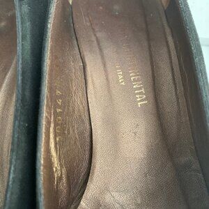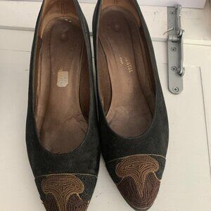 Vintage Black Suede Woven Detail Heels Size 7 / Made in Italy / Lady Continental Shoes / Embellished Toe Block Heels
