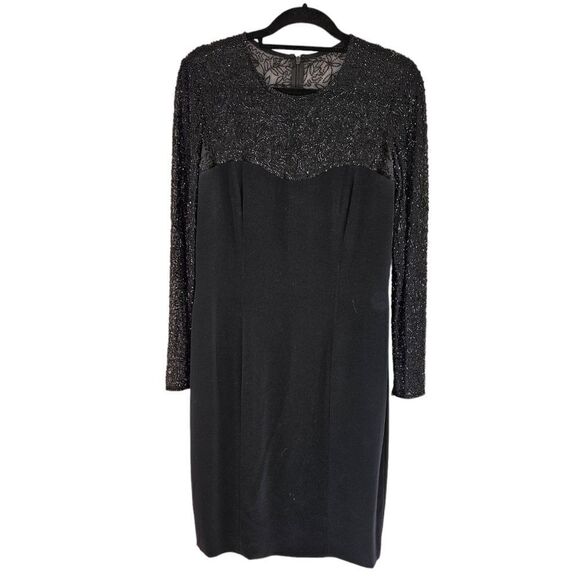 Vintage Black Tie Oleg Cassini Intricately Beaded Long Sleeve Evening Dress 12