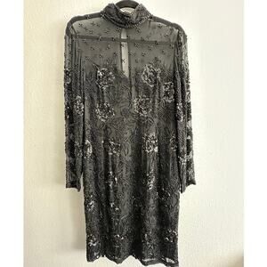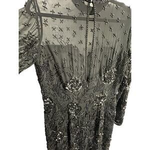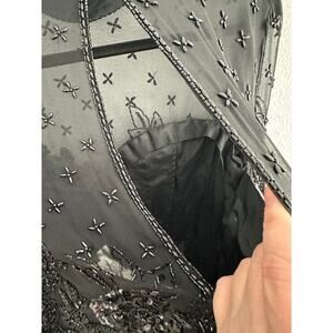 Vintage Black Tie Oleg Cassini black beaded classic timeless cocktail dress sz 8