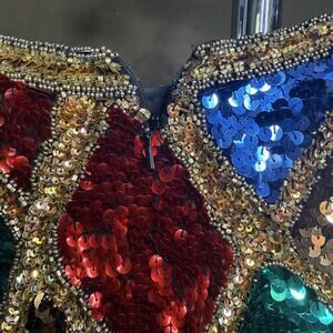 • Color: Multicolor sequins with gold bead accents