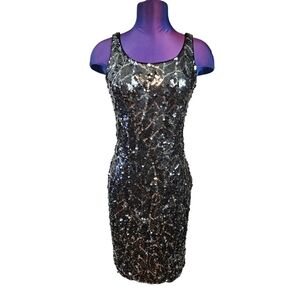 Vintage Black Tie by He-Ro Black Silver Sequin Mini Dress Bodycon Size 4 Women's