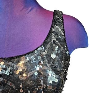 Vintage Black Tie by He-Ro Industries Sequin dress. Fits true to size 4, bodycon snug. This is a stunning statement piece for your wardrobe, vintage 70's 80's style very glam. Super stunning with black beads that accent this georgous dress around the neck, arms, and hem. This is a one of a kind dress.
