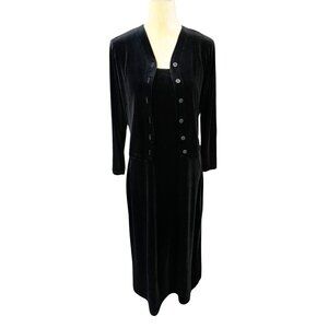 Vintage Black Velvet 2 Piece Dress Set Tank Maxi & Cardigan Medium Witchy Vamp