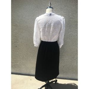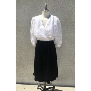 Vintage Black Velvet And White Lace Cocktail Evening Dress