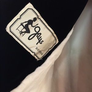Vintage black velvet coat with white mink collar. Tea length with button cuff and closure. From Jays in Boston (1918-1960).coat is circa 1940's.