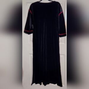 Vintage Black Velvet Dress with Red Accents w/ Side Split -22" pit to pit, 51" L