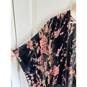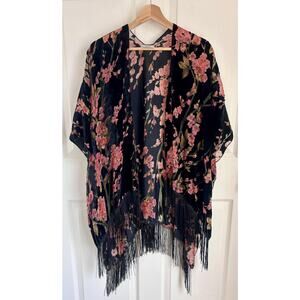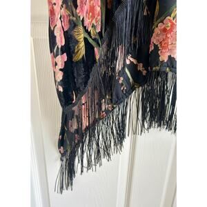 Vintage Black Velvet Floral Shaw | Boho Eclectic Style | Granny Chic