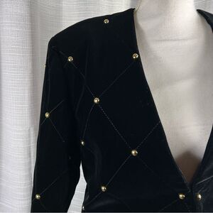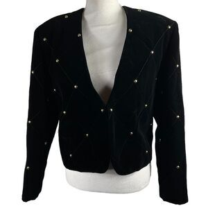 Vintage Black Velvet Gold Stud Lined Formal Bolero Jacket Medium 1991 Holiday