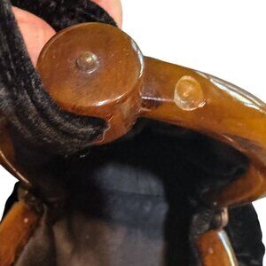 Vintage Black Velvet Handbag With Amber-Like Lucite Frame Drawstring Closure Gra